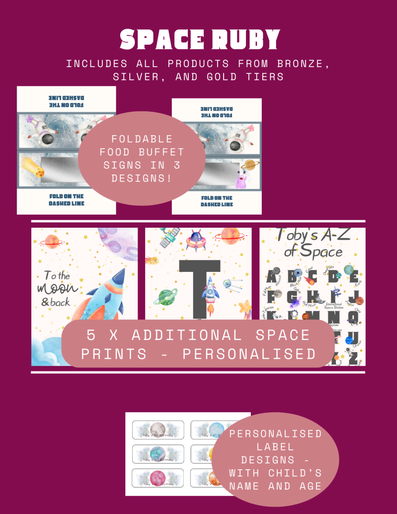 - Party hats (will need to be cut out and put together) in 5 designs - personalised with child's name and age.